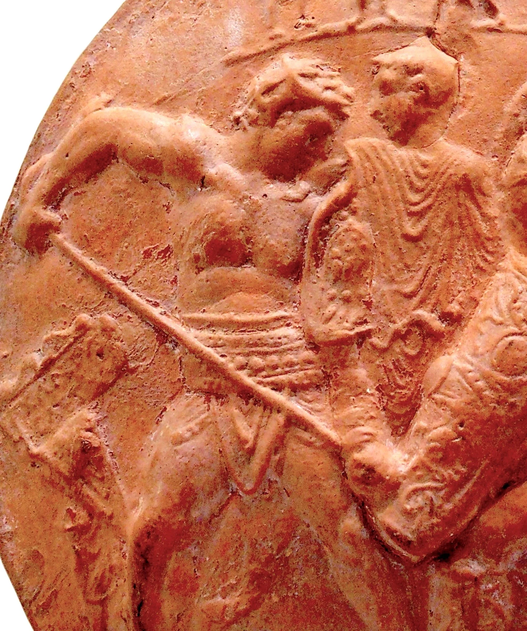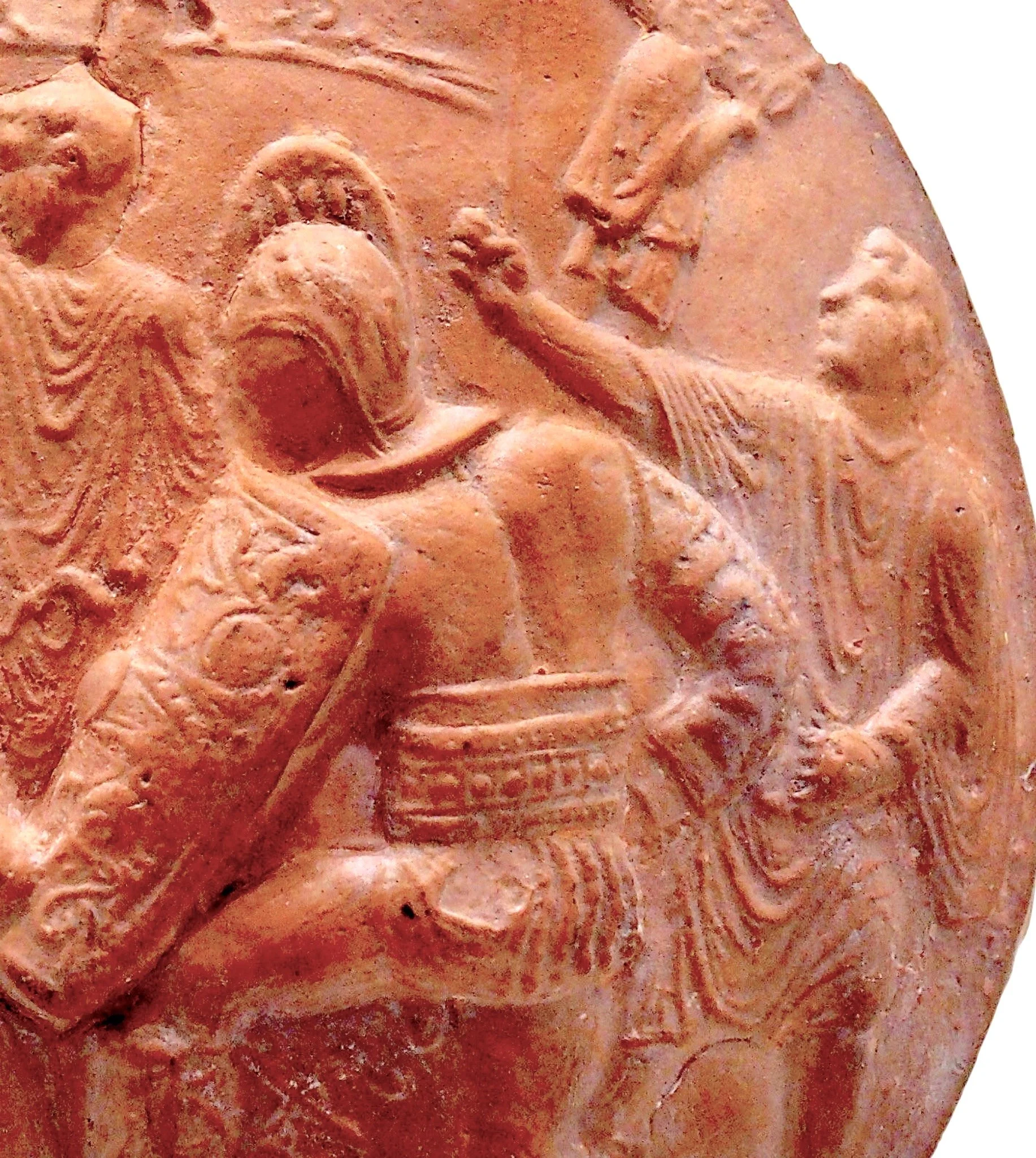 Nella parte inferiore del medaglione è rappresentata la barricata che separava l'arena di combattimento dal pubblico.